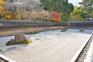 龍安寺の石庭の紅葉は、かなりオススメですよ。